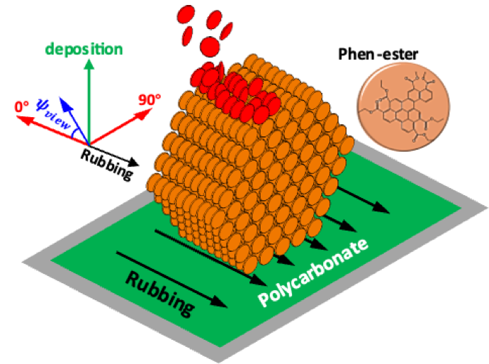 Researchers in the Wisconsin MRSEC have shown that depositing onto an alignment substrate creates better glass films that are anisotropic biaxially, meaning they are aligned in the plane of the substrate as well as out of plane. The in-plane orientation of the molecules affect how they interact with light and conduct electricity. In general, more alignment is better for applications ranging from flexible transistors to OLEDs to organic photovoltaics.