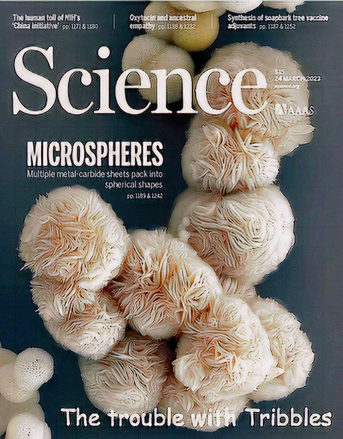 We also observed a novel regime of CVD growth that conceptually resembles dynamics of cellular membranes during endocytosis: flat MXene carpets evolved into spherical “vesicles” composed of individual Ti2 CCl 2 sheets radiating from the center and oriented normal to the surface. The appearance of the MXene vesicles resembles alien Tribbles from the Star Trek movie “The trouble with Tribbles”