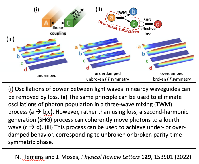 Normally, unwanted oscillations are removed from a dynamical system through the introduction of energy loss. In materials used for moving photons between light waves of different frequencies – a key process, e.g., for transfer of information between nodes of a quantum network – unwanted oscillations between photon populations can limit device efficiency and cause instability and noise.