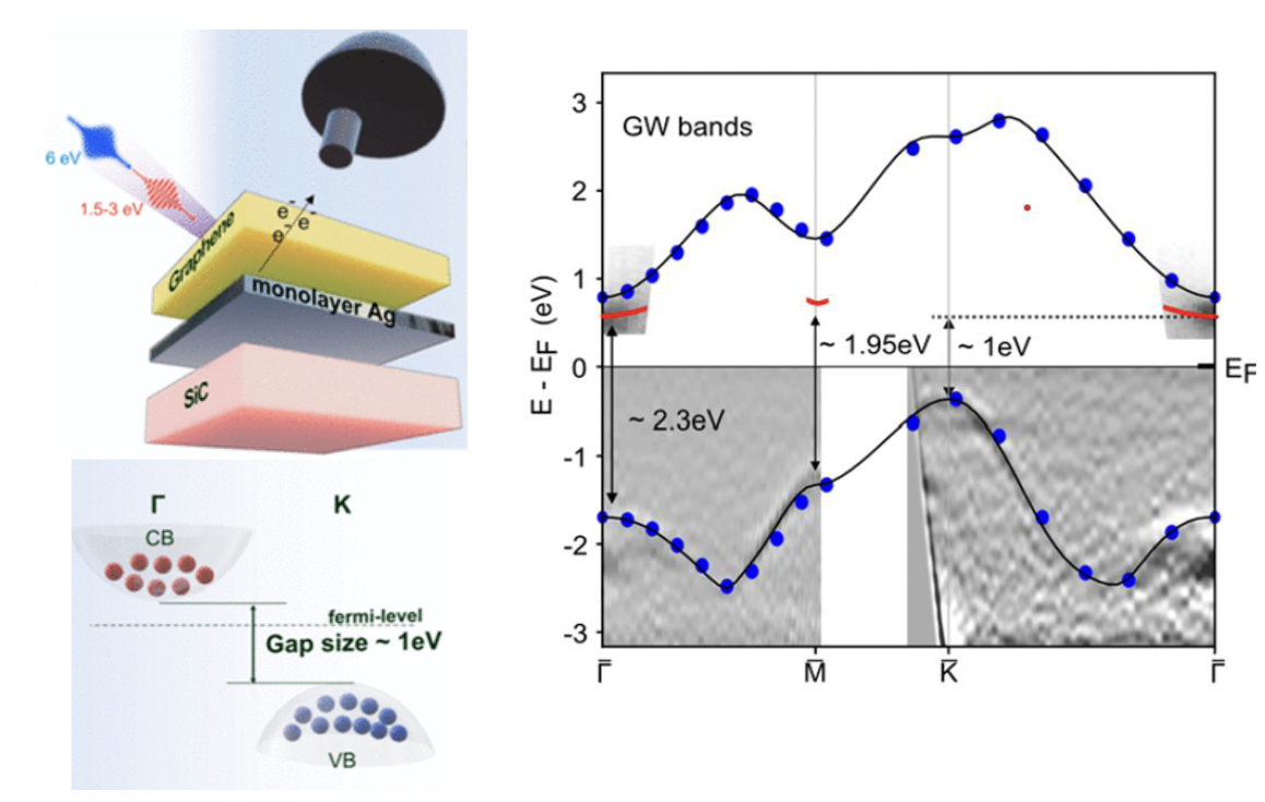 - Epitaxially grown monolayer Ag confinedbetween bilayer graphene and SiC is found todevelop a large band gap (> 1eV)