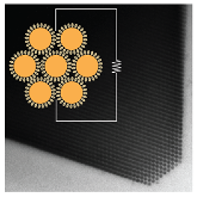Colloidal nanocrystals of metals, semiconductors, and magnets serve as functional building block materials, and the assembly of nanocrystals into higher order structures is critical to their performance in functional devices. We demonstrate the self-assembly of charged nanocrystals into strongly electronically coupled supercrystals, a feature previously not possible with traditional insulating organic surface ligands.