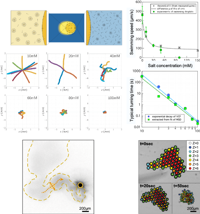 Ordinary oil droplets in water are too big to move by Brownian motion driven by thermal fluctuations, however they can swim if they dissolve in their surroundings in a way that causes an asymmetry in the surfactants at the interface. Understanding this phenomenon is important because it allows us to tune key parameters, such as the droplet speed and turning frequency, but also because the locomotion of droplets mimics the chemotaxis of microorganisms in their own secretion.