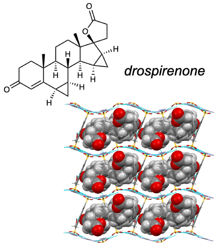 MRSEC investigators reported that a versatile toolkit of guanidinium organosulfonate (GS) hydrogen-bonded host frameworks can form inclusion compounds with complex “stubborn” molecules that cannot be crystallized or form suitable single crystals for X-ray diffraction analysis by themselves, enabling determination of their molecular structure.