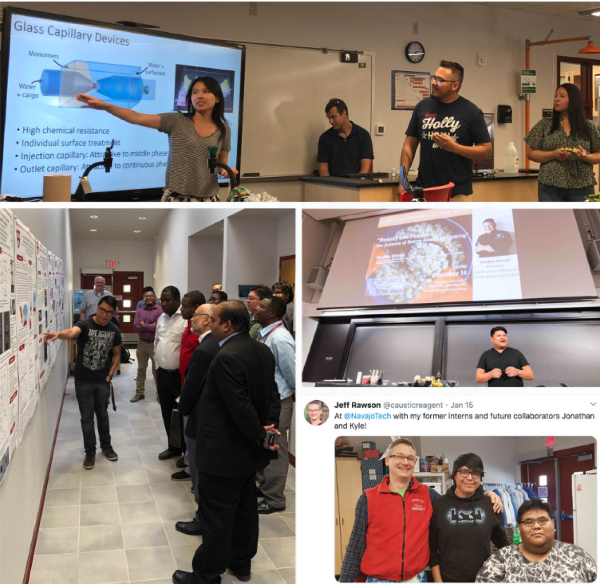 This unique partnership between Navajo Technical University (NTU) and the Harvard MRSEC builds enduring pathways for undergraduate Native American students into STEM by including traditional Navajo perspectives and methods of scientific inquiry in materials science research and education. The collaborations between NTU and the MRSEC engages students in materials science research that can be used to address health and environment issues relevant to the Navajo Nation. In 2019-2020, Harvard hosted 7 students in the summer research program, and NTU has brought Harvard postdoctoral fellows and graduate students to the NTU campus for workshops on soft robotics and microfluidics.