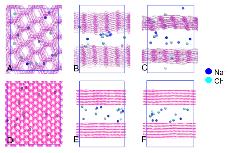 Water desalination offers a promising solution to the shortage of fresh water, which is among the most critical issues facing modern society. With molecularly precise porosity, covalent organic frameworks (COFs) are ideal candidate membranes for this purpose. Through molecular dynamics simulations, the Northwestern University MRSEC Super-Seed has studied the dependence of pore size dimension on the desalination properties of COF membranes. In particular, for pore sizes between 1 nm and 2.8 nm, COF membranes prevent the flow of sodium chloride ions while allowing for efficient transport of water molecules. This study thus identifies the optimal pore size range for desalination, which will inform the design of COF-based water purification membranes.