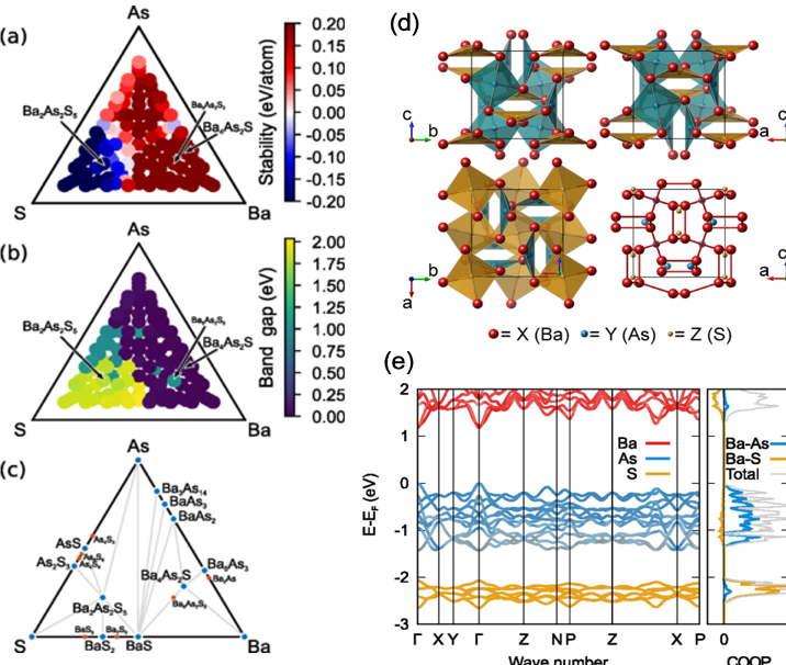 Recently, novel methods based on materials informatics and machine-learning (ML) models have emerged to assist the search for materials with improved properties in industrially relevant applications. To apply this approach in heteroanionic materials (HetMs) discovery, NU-MRSEC IRG-2 has reported a computational investigation of a series of ternary HetMs with tunable band gaps from machine-learning and crystal structure prediction. The compositions for these materials were predicted through a search guided by machine learning, while the structures were resolved using the minima hopping crystal structure prediction. Several candidates X4Sb2Se (X=Mg, Ca, Sr, Ba) have been predicted to exhibit strong optical absorption in the visible range, while others show promising thermoelectric performance due to high power factors and low lattice thermal conductivities.