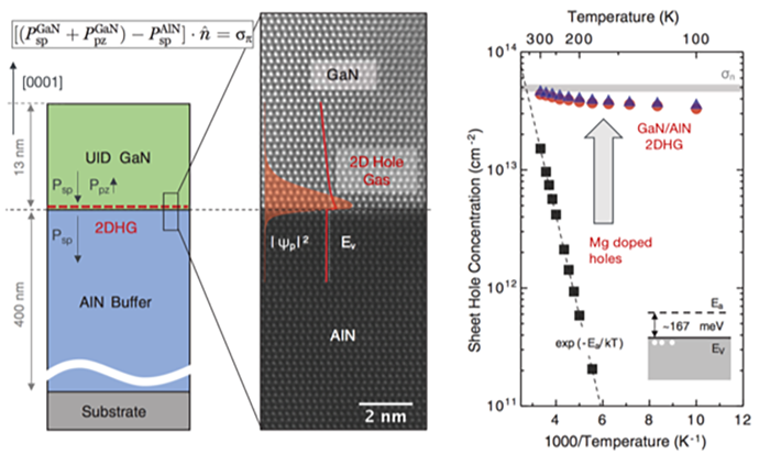 A Cornell group’s discovery of high-conductivity holes at the interface between GaN and AlN completes the hunt for electrons and holes induced by polarization in the column III-nitride semiconductors. These materials have enabled solid-state lighting and highly-efficient microwave and power electronics. This finding creates a way to explore the physics of closed-packed high-density electron-hole systems in this technologically-relevant material system.
