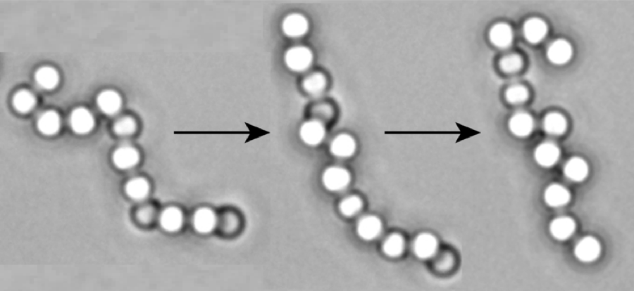 A goal of colloidal self-assembly is to fabricate in bulk complex three-dimensional structures that current manufacturing methods cannot produce. One way to assemble such a material is to take a flexible polymer made of colloids and ‘fold’ it into a designed configuration, just like polypeptides fold into proteins. This requires a flexible colloidal polymer.