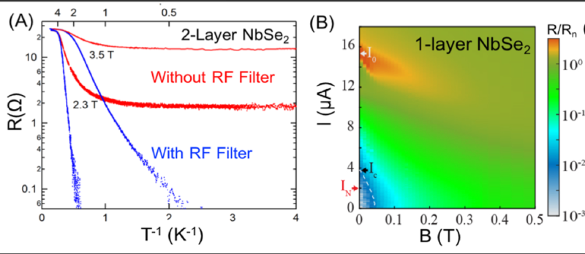 Two-dimensional materials offer a unique opportunity to explore superconductivity in the two-dimensional (2D) limit with low disorder. IRG1 creates heterostructures of high-quality monolayers of superconductors encapsulated within insulating boron nitride, which provides protection from external disorder and oxidation. In the past year, the team has made three notable discoveries in this area: