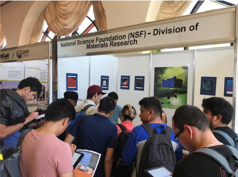The NSF-MRSEC booth was featured at the XXVII International Materials Research Congress (IMRC) in Cancun, Mexico on August 19-24, 2018 to increase awareness, promote international collaboration, and broaden participation from traditionally underrepresented groups in the National Science Foundation Materials Research Science and Engineering Center (NSF-MRSEC) program. The annual IMRC is a joint effort of the Materials Research Society and the Socieda Mexicana de Materiales that helps promote leading-edge materials research globally. The NU-MRSEC led the effort and was joined by the UChicago-MRSEC, UCSB-MRSEC, and NYU-MRSEC. The NSF-MRSEC booth attracted 246 IMRC attendees, primarily from Latin America.