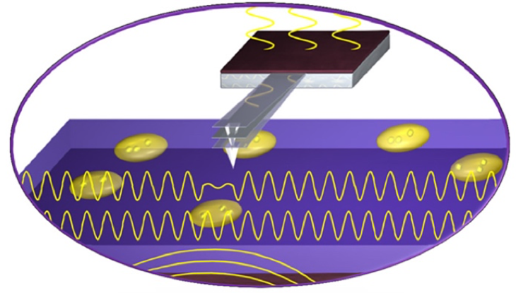 In addition to providing access to state-of-the-art commercially available instruments, the Northwestern University MRSEC Shared Facilities also participate in the development of new experimental methods and tools. In particular, the Ultrasound Bioprobe has been developed that combines the noninvasive nature and sensitivity of ultrasound waves with a near-field atomic force microscope mechanical probe that provides high phase sensitivity and mechanical contrast of the scattered ultrasound wave. This instrument enables high subsurface phase sensitivity under physiological conditions and nanomechanical imaging of subcellular structures. In addition to biological specimens, nondestructive subsurface imaging can be performed on other systems such as polymeric and semiconductor materials.