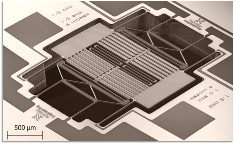 Limited performance and reliability of electronic devices at extreme temperatures, intensive radiation found in space exploration missions and earth-based applications requires the development of alternative computing technologies. Nebraska MRSEC researchers have designed and prototyped the world’s first high-temperature thermal diode. They have demonstrated the use of near-field thermal radiation from smooth and metamaterial surfaces to achieve thermal rectification at high temperatures. They named the technology NanoThermoMechanical thermal computing. Unlike in electronics, a NanoThermoMechanical device uses heat instead of electricity to record, store, and process data. Furthermore, the researchers were able to design thermal logic gates based on NanoThermoMechanical diodes and transistors. Thermal computing has a potential to unlock the mysteries of outer space, explore and harvest our own planet’s deep-beneath-the-surface geology, and harness waste heat for more efficient-energy utilization.