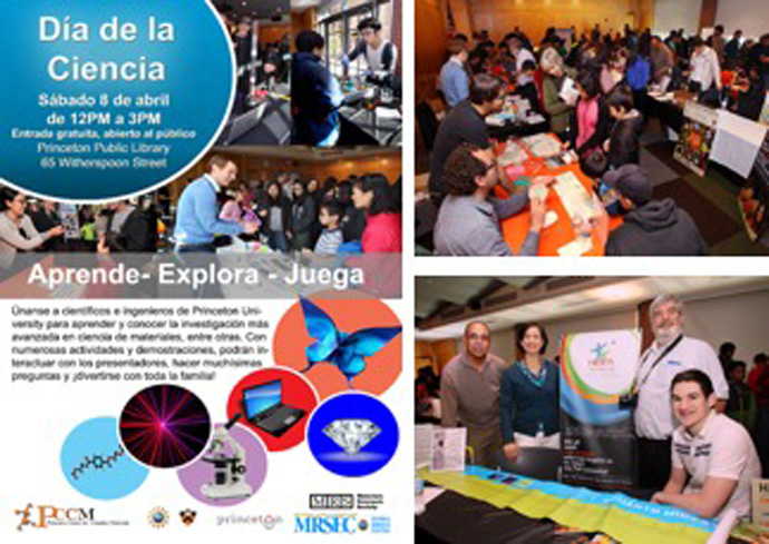 On April 8, 2017, PCCM held its first Día de la Ciencia at the Princeton Public Library. Forty scientists, mostly PCCM members, at 20 tables, met with over 500 members of the community. In an attempt to improve outreach to all members of the community, PCCM created Día de la Ciencia to reach the large Latino/Latina population in the town of Princeton, NJ and surrounding region. PCCM piloted Día de la Ciencia with science demos and at least one Spanish speaking presenter at each table. PCCM worked with leaders in the community and Princeton University to help with the program. Advertisements in both Spanish and English were sent to local schools and flyers were distributed in the community. Partners included Hispanics Inspiring Students’ Performance and Achievement (HISPA), PPPL, PRISM, YMCA, Princeton Public Library, BMS and others.