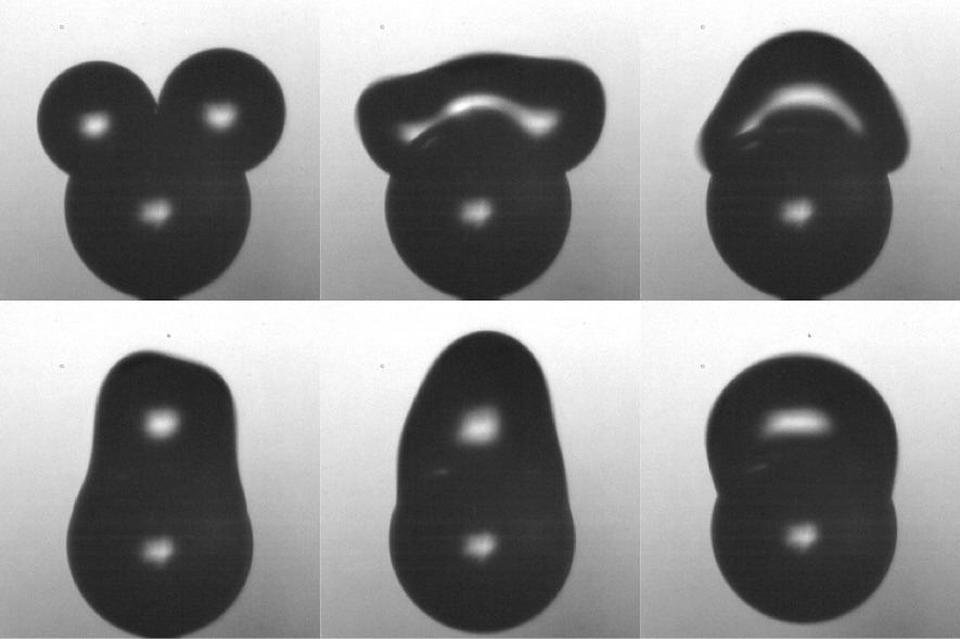 Researchers at Duke University and the University of British Columbia are exploring whether surfaces can shed dirt without the use of fragile superhydrophobic coatings. In a recent publication in Applied Physics Letters, they investigate the self-propulsion phenomena that occur when two droplets come together, catapulting themselves and any potential contaminants off the surface of interest. According to RT-MRSEC investigator, Chuan-Hua Chen, “When droplets coalesce, or come together on a solid particle, they release energy - analogous to the release of biochemical energy of a human body on a pogo stick. The energy is then converted through the interaction between the oscillating liquid drop and the solid particle - analogous to the storage and conversion of energy by the spring mechanism of the pogo stick.”