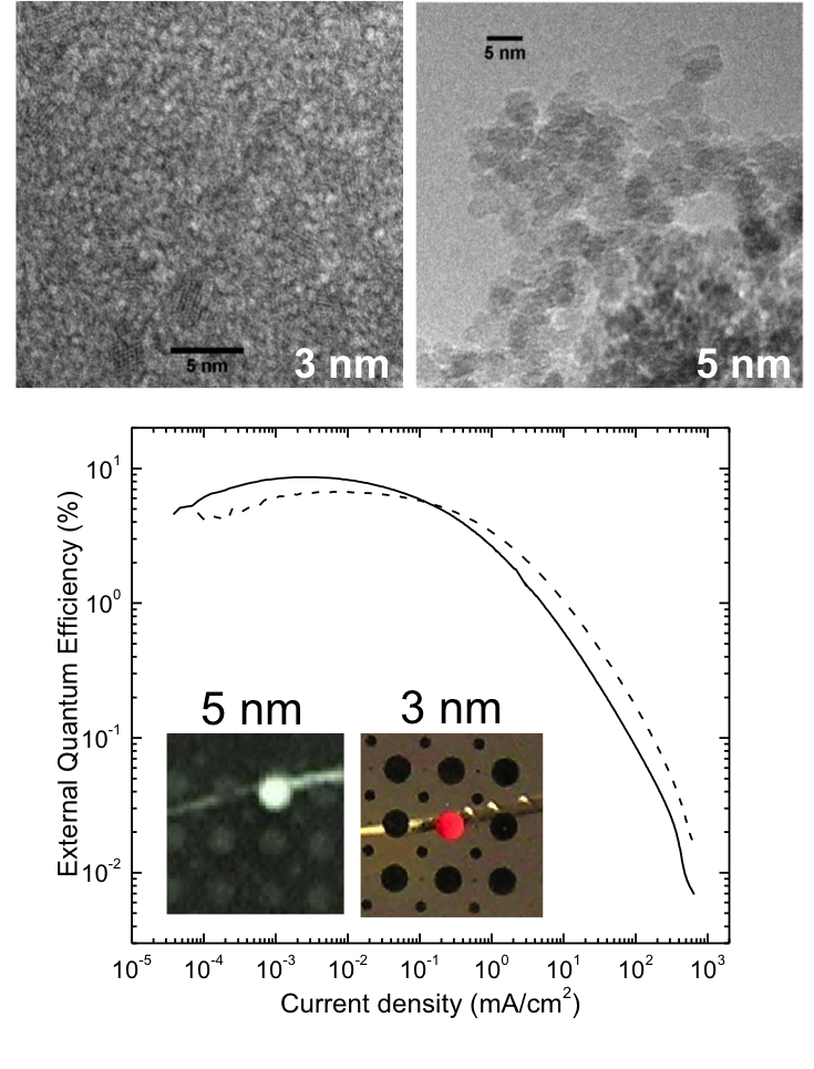 Hybrid light-emitting devices based on organic semiconductors and inorganic semiconductor nanocrystals are of great interest for applications in optical displays and solid-state light sources. Silicon, a poor light emitter in bulk form, can exhibit strong luminescence in nanocrystal form; however, efficient electrical excitation had not been demonstrated. In this study, Cheng et al. showed a silicon nanocrystal device with an external quantum efficiency of 8.6%, the highest reported efficiency for any nanocrystal light emitting device.