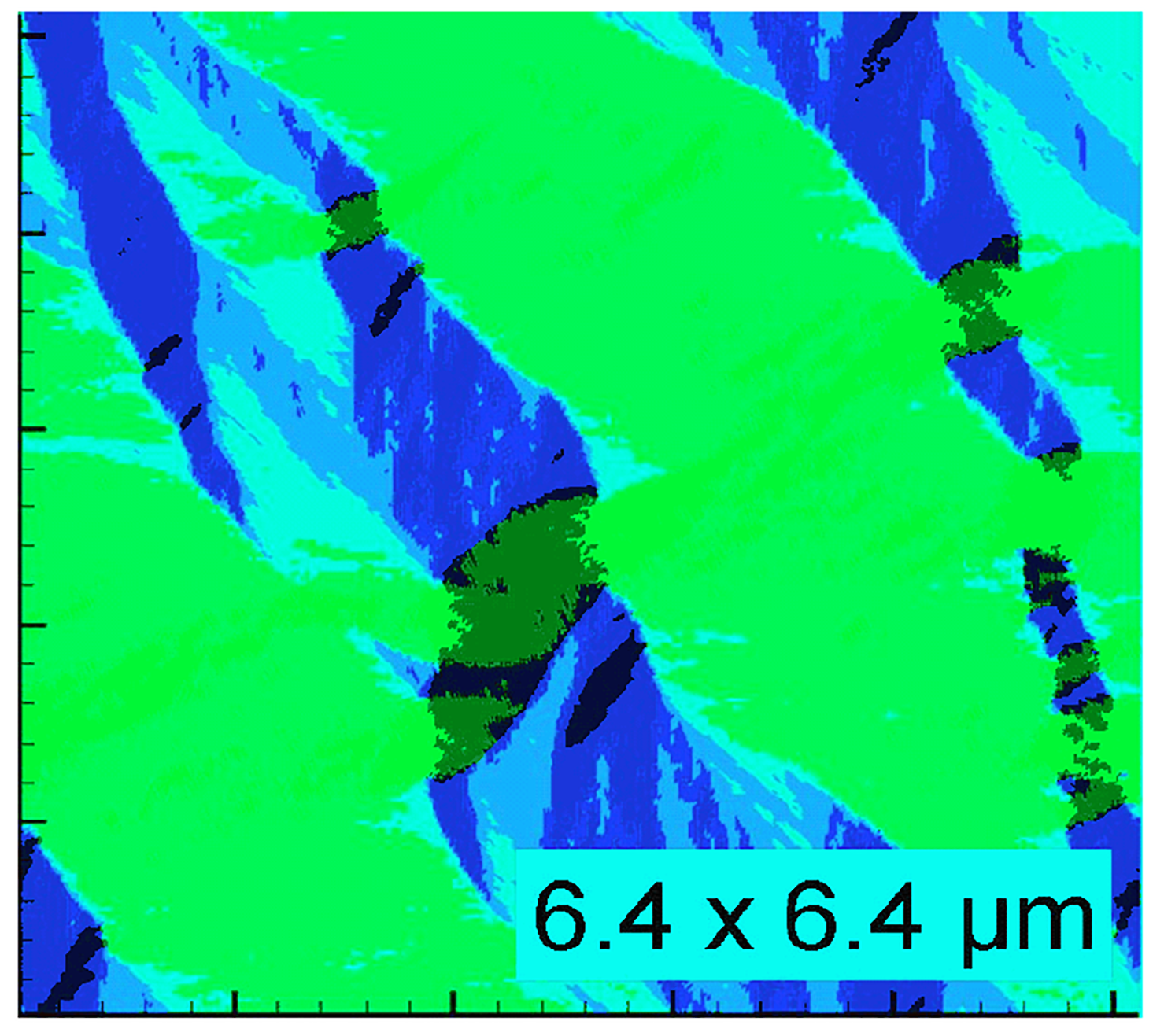 Magnetic storage of digital data is now possible at densities approaching 1 Terabit per square inch at a cost of only about a tenth of a cent per Megabit. To a large extent, the breathtaking progress in this area of technology is sustained by discovery of bits. The invention of “GMR" sensors based on stacks of ultra-thin films of magnetic metals (for which the Nobel Prize in Physics was awarded in 2007) is a perfect example. In these devices the ability to "pin" the magnetic orientation of one film in the stack while allowing another to respond freely to a magnetic field is a key principle. This "magnetic pinning", or "exchange pinning" is achieved by layering a simple magnet with a more complex magnetic material called an antiferromagnet. This pinning effect discovered over 50 years ago, has been used in devices for over a decade, but is poorly understood. One of the major reasons for this is that the pinning effect is due to atomic defects in the antiferromagnet. Experiments are hindered by the fact that these defects are difficult to probe, while theoretical research is hampered by the fact that it is difficult to incorporate such defects in calculations. Recently, IRG-3 students Jyo Saha, Mike Lund, and Mun Chan, working with postdoc Jeff Parker and IRG faculty Chris Leighton, Randy Victora, and Paul Crowell, have performed one of the most detailed studies of this exchange pinning in materials very similar to those used in hard disks. Most importantly, the experimental results were directly compared to realistic micromagnetic simulations. These supercomputer simulations break the sample up into hundreds of thousands of tiny magnetic elements (see figure), and are sufficiently powerful that the all-important defects can be properly accounted for. This approach has enabled the researchers to understand important factors such as the influence of layer thickness and grain size, complex magnetic switching, and even a mysterious effect where the exchange pinning deteriorates over time, a major problem for applications.