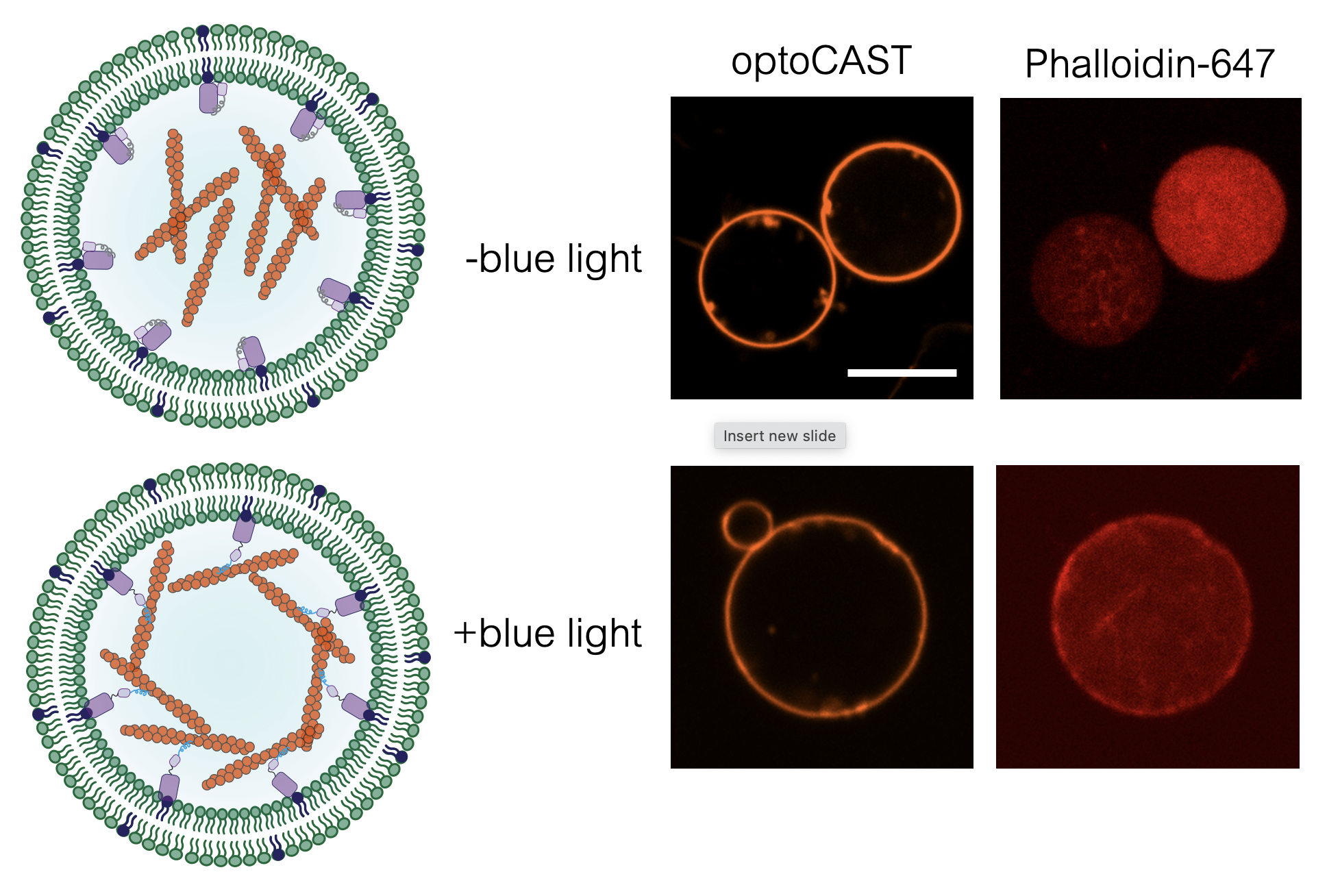 Here, we developed a method to generate a synthetic cortex at the membrane of synthetic cells upon blue light illumination.