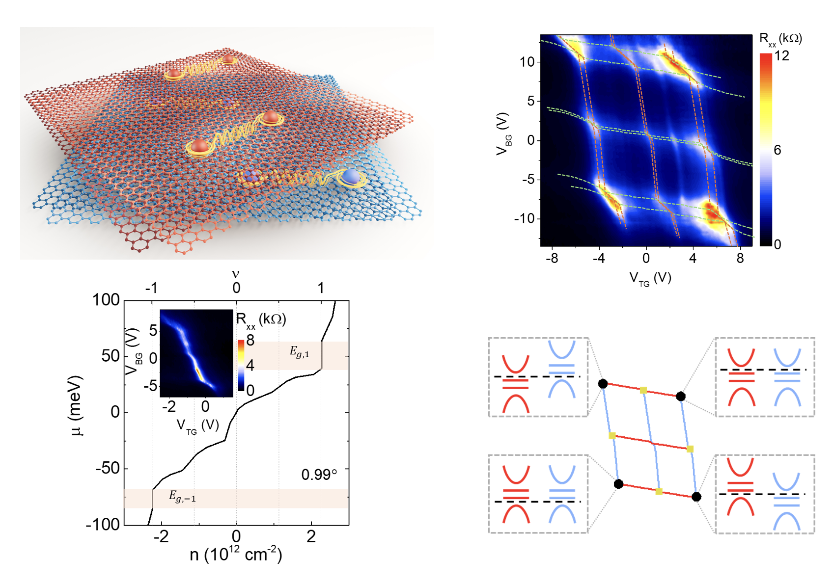 An electrostatic analysis of the resistance vs top and bottom gates provides the chemical potential vs filling factor of the flat bands