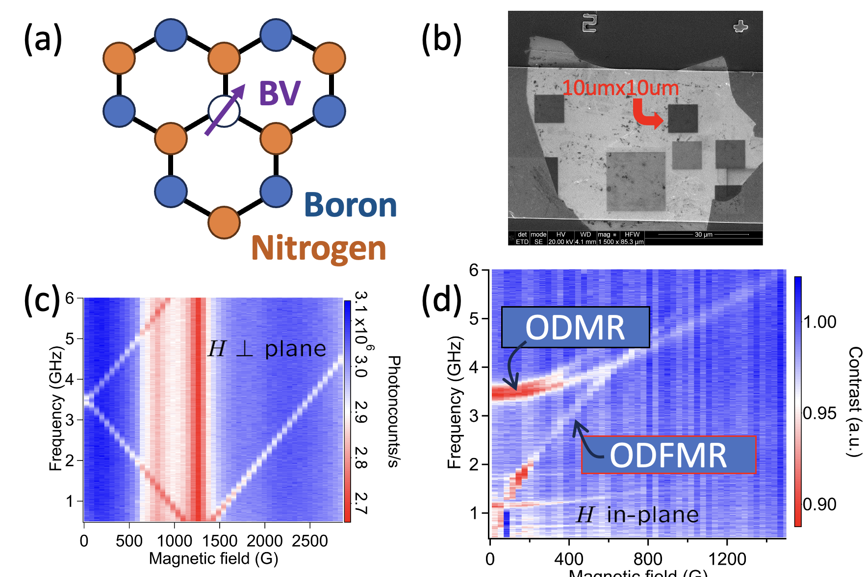 Spin-sensitive photoluminescence of these spin defects in van der Waals based materials, such as the boron-vacancy (BV) centers in hexagonal boron nitride (h-BN), enables spatially localized, quantum sensing of weak static and dynamic magnetic fields