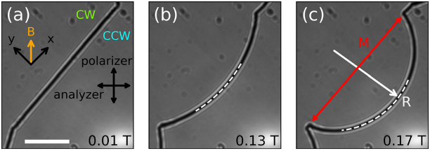 Disclinations are line-shaped defects that arise in liquid crystals and other materials. Using confocal microscopy and magnetic fields, researchers characterized their three-dimensional shape and measured their line tension by deforming their shape. Specifically, the disclinations in twisted liquid crystal cells form curved patterns that bend into circular arcs in strong magnetic fields. By comparing observed disclination contours to theoretical models, the researchers determined the mechanical and morphological properties of single disclinations—crucial information for designing new soft materials with unique responses to external stimuli.