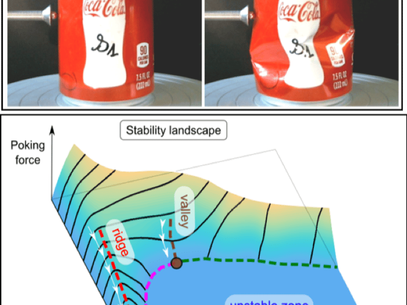 Crushing a soda can from top to bottom is easier if it is dented initially on the side. Predicting the force needed to crush a dented can, however, which is of critical importance for structural reliance of materials engineering is quite challenging.