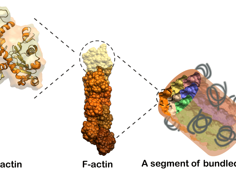 The cytoskeletal component actin plays a crucial role in various cellular functions, including cell shape regulation and intracellular transport, by forming filaments and networks. Despite the current understanding of actin's morphological versatility, the impact of crowded environments—specifically how actin filaments organize into bundles and how this organization changes the protein secondary structure—remains under-explored. Here, we used two-dimensional infrared (2D IR) spectroscopy and structure based spectral calculations to map out structural changes of actin filaments under two degrees of crowding and bundling.