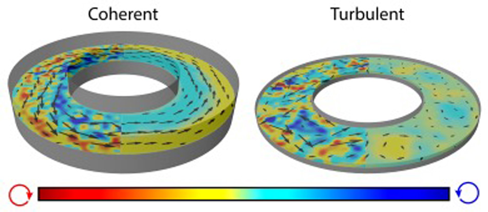 Navier-Stokes equations dictate that the conventional fluid flows only in response to an externally imposed gradient in stress or a body force. We developed a novel active fluid that is comprised of microtubules and energy consuming molecular motors kinesin. We demonstrate that upon confinement, such active fluids undergo an inherently non-equilibrium transition from local chaotic flows to globally coherent flows that have long range order and are capable of transporting matter on macroscopic (meter) lengthscales. Our work uncovers a simple scale invariant criterion that predicts the location of the transition to coherent flows, and demonstrates that the formation of coherent flow is accompanied by the formation of a nematic layer that wets the confining boundaries at a specific oblique angle.