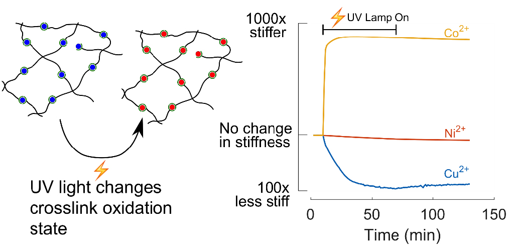 The ability to modify on demand the viscoelastic properties of hydrogels through the use of an externally applied stimulus such as light remains a challenge.