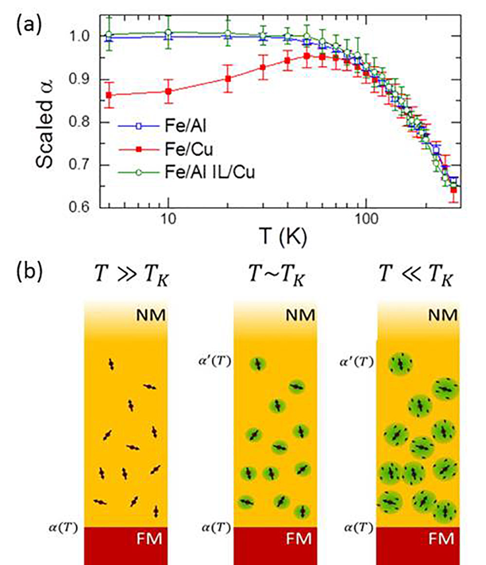 The idealized picture of an interface between two elemental materials is simply an abrupt transition between planes containing two different types of atoms. In practice, atoms of one species always diffuse into the other, but transport models usually ignore this fact. The IRG investigators, with collaborators from Oak Ridge National Lab have shown how interdiffusion has a profound effect on spin-polarized transport for certain pairs of normal metals and ferromagnets: those which form Kondo systems. In this case, spin transport is modified by “clouds” of electrons that from around magnetic impurities in the normal metal. This explains an anomalous reduction in the spin signal at low temperatures observed by many groups in spin valves based on Fe-containing alloys.